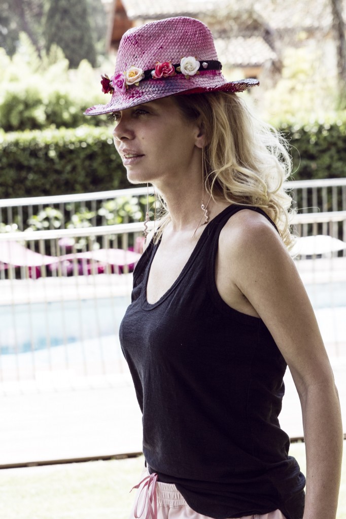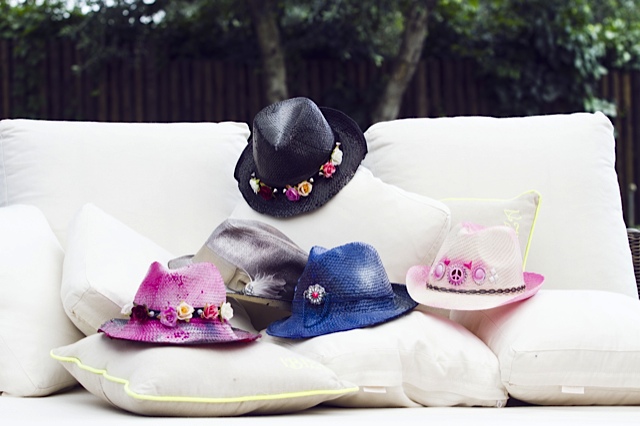 Questi cappelli nascono dalla creatività senza fine della mia amica Federica Tosi, già stilista del noto brand Luxury Fashion. L’ispirazione la prende nell’isola di Ibiza, sua meta preferita, in realtà luogo dove dovrebbe riposarsi, ma la sua vitalità e curiosità non le permettono di stare ferma!!! Sto cercando di convincerla a condividere con tutte noi questi meravigliosi cappelli, che per ora colleziona e regala a qualche amica (solo quelle che riescono a convincerla a separarsene). Io esageratamente insistente, sono riuscita a strapparle questi modelli, che realizza tagliando, bruciando e dipingendo la paglia. Successivamente vengono applicate borchie, piume, fiori, cristalli e qualsiasi altro materiale trovato dopo una laboriosa e selettiva ricerca. Ragazze, speriamo che nel mese di agosto ( suo periodo di siesta e di soggiorno ad Ibiza) crei qualcosa per noi. Fedeluxury never stops!!!