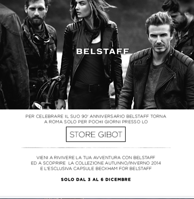 Per celebrare il 90° anniversario Belstaff torna a Roma, e Gibot per l’occasione ha organizzato un cocktail party in via Nomentana 457/473, Roma. L’esclusiva “capsule Beckham for Belstaff” sarà disponibile presso lo store fino al 6 Dicembre. Protagoniste delle immagini, le biker jacket create insieme a Belstaff dallo stesso Beckam, rivisitazione del classico chiodo da motociclista e ispirate a un modello vintage del brand. Il risultato è SUPER! Il consiglio: ragazze guardate le foto e il video di Beckham per Belstaff… DA SVENIMENTO!!!