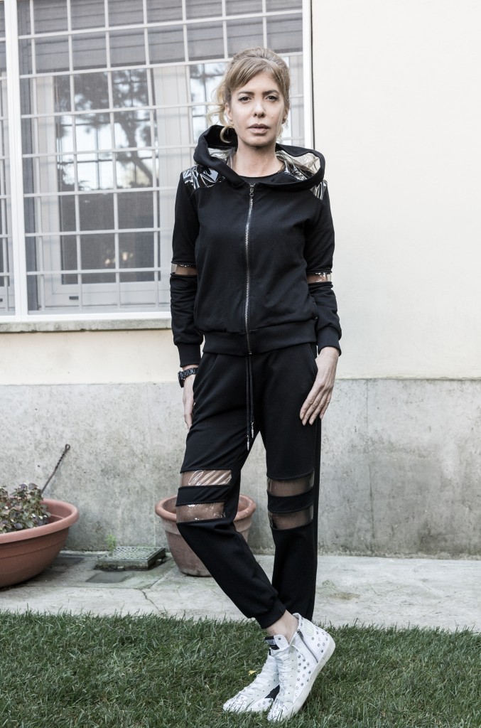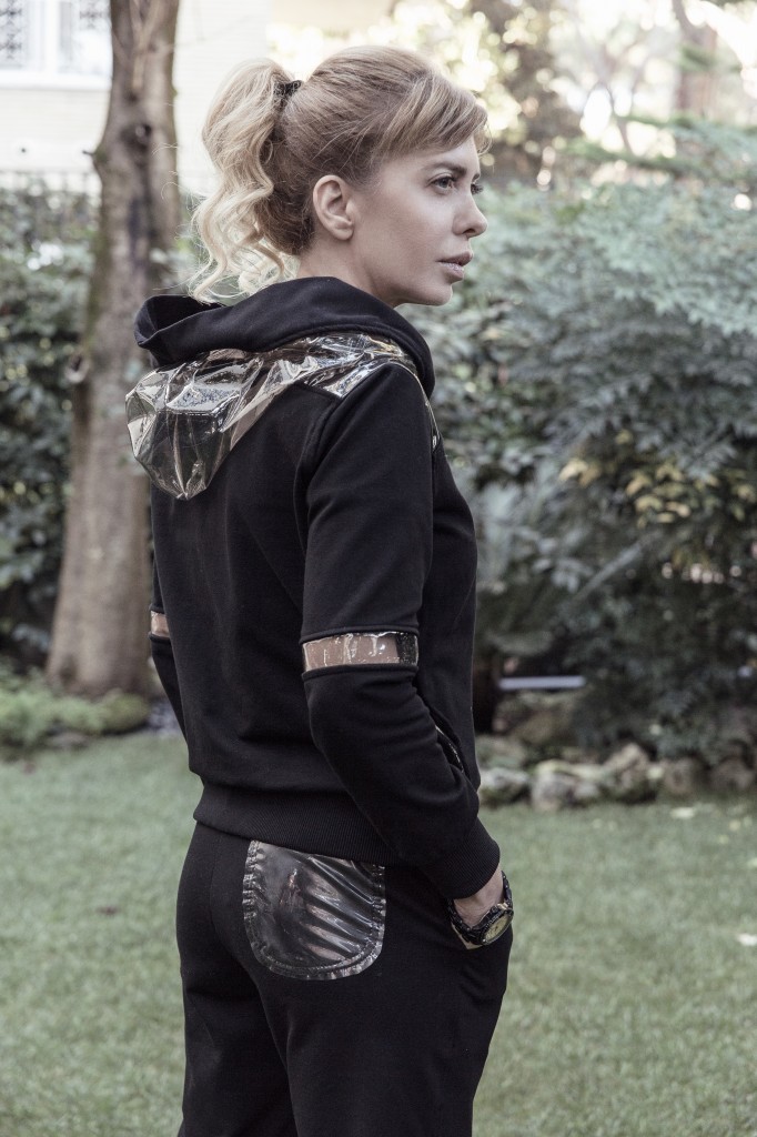 Oggi è un’altra di quelle giornata in cui non so decidere se andare in palestra o prendere la mia macchina fotografica e lanciarmi alla ricerca di qualche outfit originale. Questa tuta dallo stile urban-sport è  sicuramente l’ideale per soddisfare le mie esigenze. Geniale l’idea del mood tagliato con la plastica trasparente, utilizzata anche per il cappuccio e il taschino dei pantaloni. Bella anche la felpa trasparente. Nulla è lasciato al caso, dove c’è tutto bisogna giocare per fare la differenza, e le stiliste di questo brand, Luxury Fashion PretACouture ci riescono in pieno. Prestissimo la loro collezione primavera estate nelle migliori boutique europee.