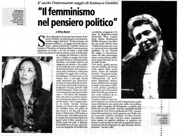 Come vi avevo anticipato eccomi di nuovo qui, il giorno della festa delle donne, a parlarvi di un libro che parla delle donne e che mi ha entusiasmata: IL FEMMINISMO NEL PENSIERO POLITICO: UN SAGGIO DI STORIA DIMENTICATA, di Katiuscia Giubilei. Oggi pubblicherò  l’introduzione, e nel prossimo appuntamento potremo iniziare a leggere il primo capitolo.
