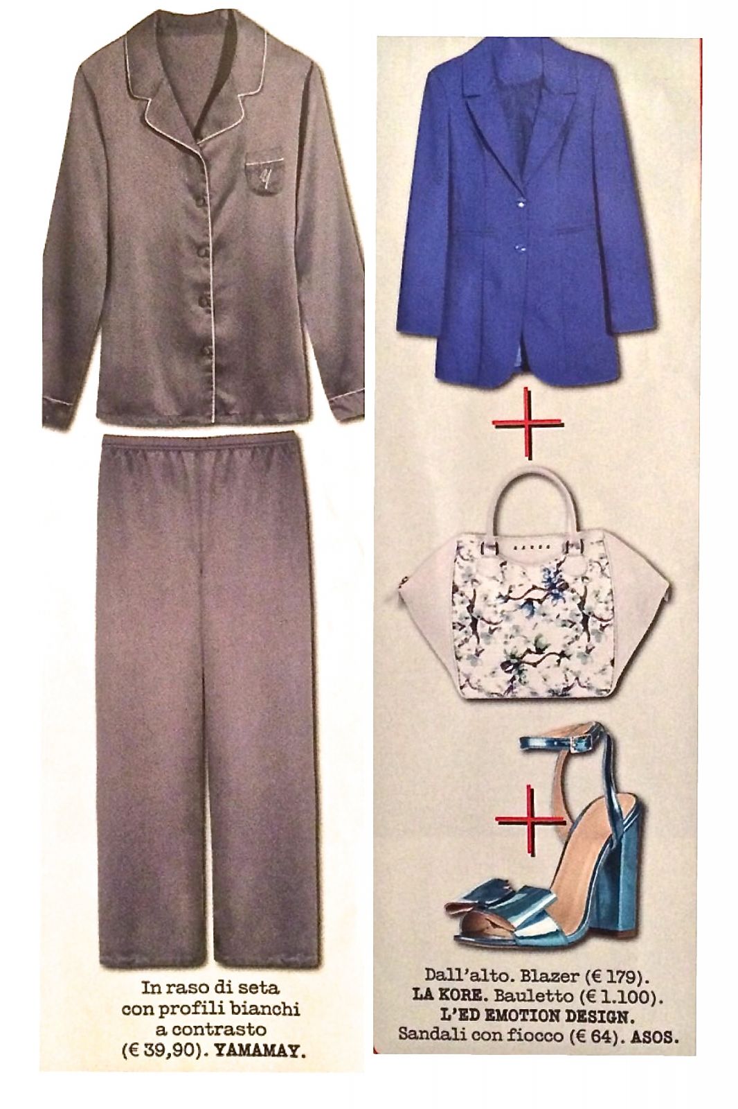 In questo caso ho aperto i cassetto della biancheria e voilà, tirando fuori il pigiama ho creato un outfit davvero in linea con la moda del “tailleur pigiama” indossata da moltissime celebrity.