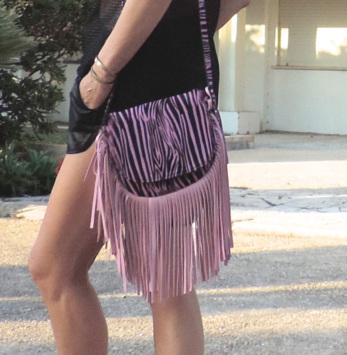 Adoro questa borsa di cavallino rosa, la fantasia zebrata è sempre un must e le frange si vedranno per tutto il prossimo inverno. Intorno a questo accessorio così protagonista sono bastati un paio di shorts, una canotta nera e il mio inseparabile cappello per creare un look very fashion!!!