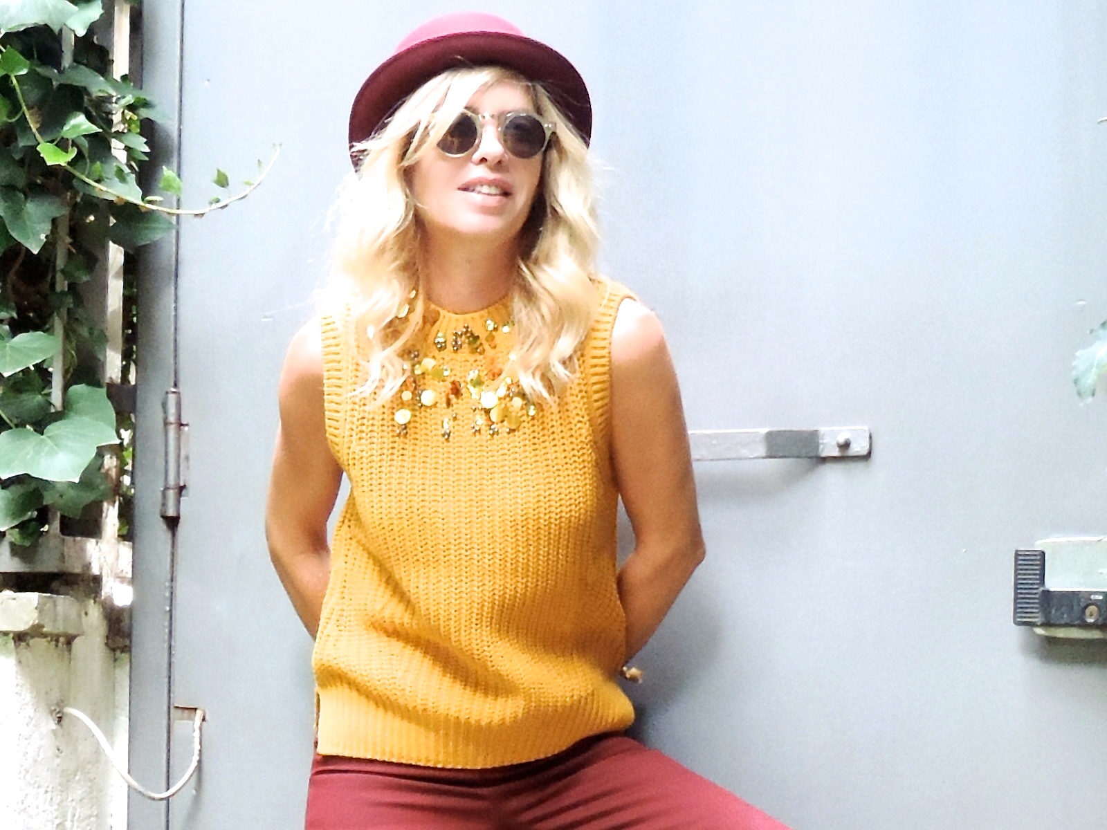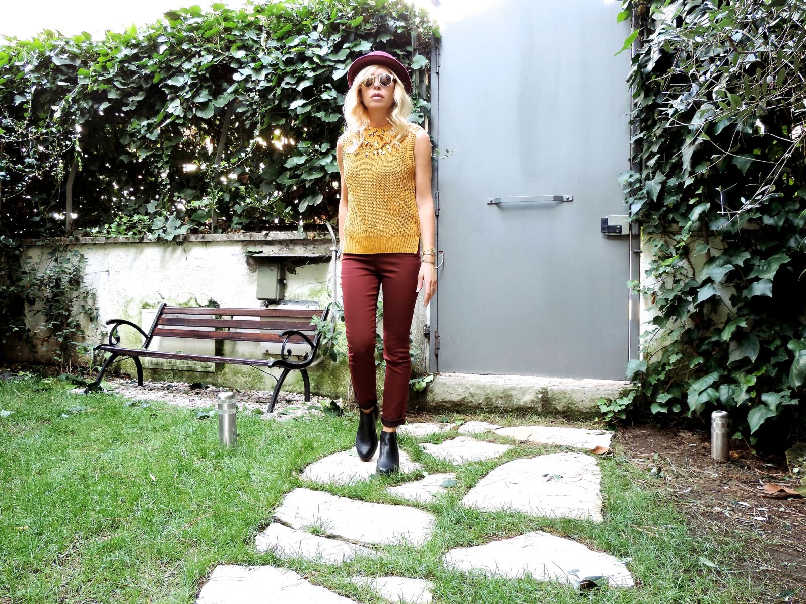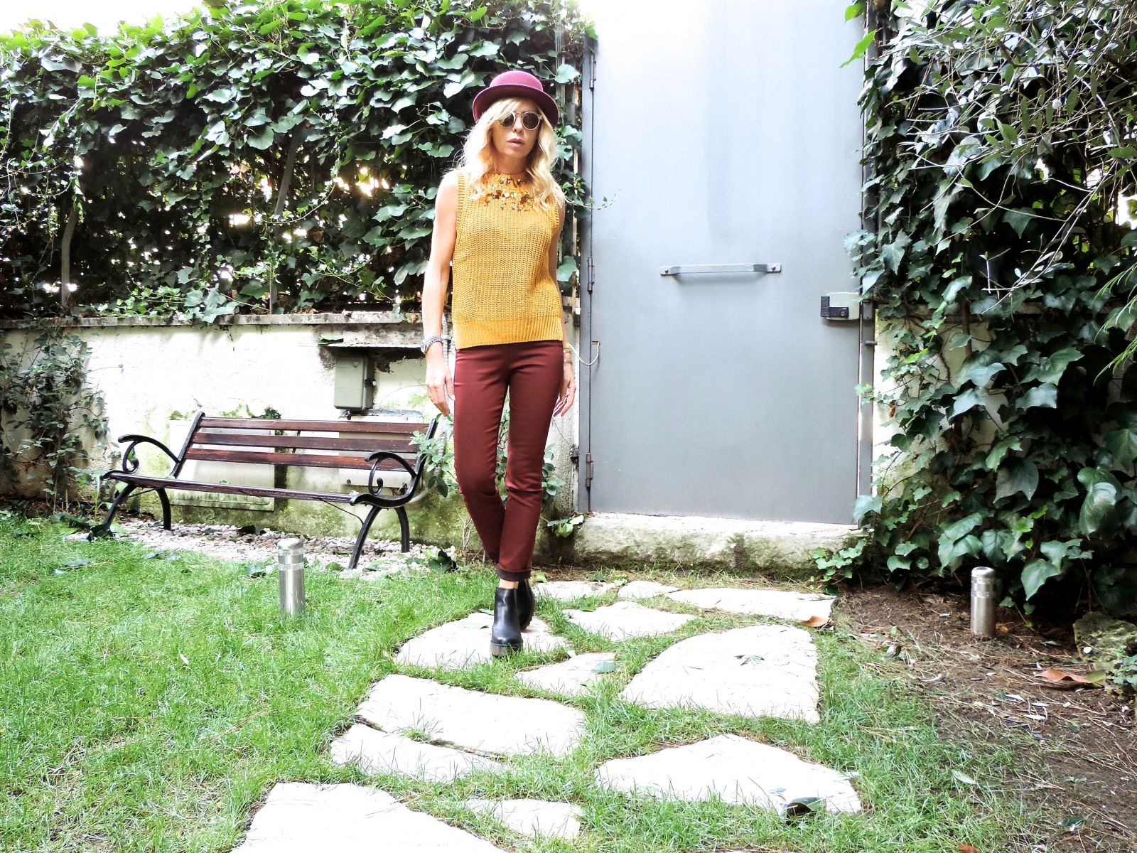 Per percorrere le vie della città, un look comodo, declinato in tre pezzi, il pull girocollo, i pantaloni skinny elasticizzati comodissimi e il mio adorato accessorio, il cappello.