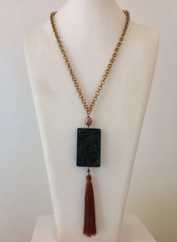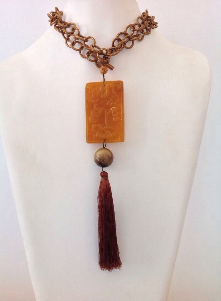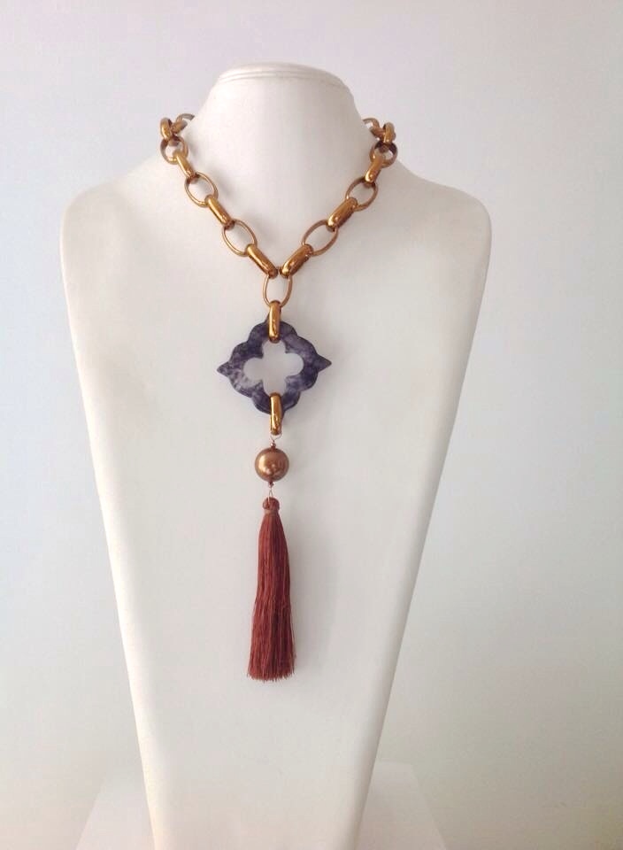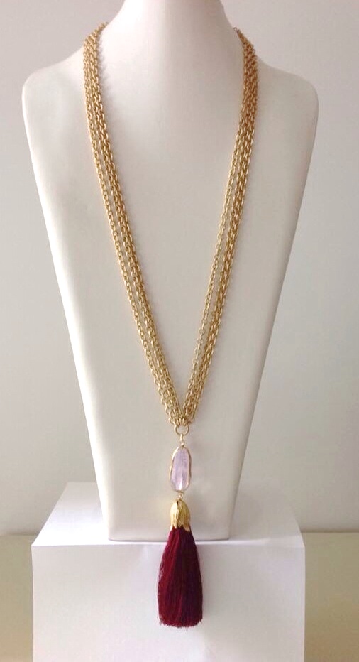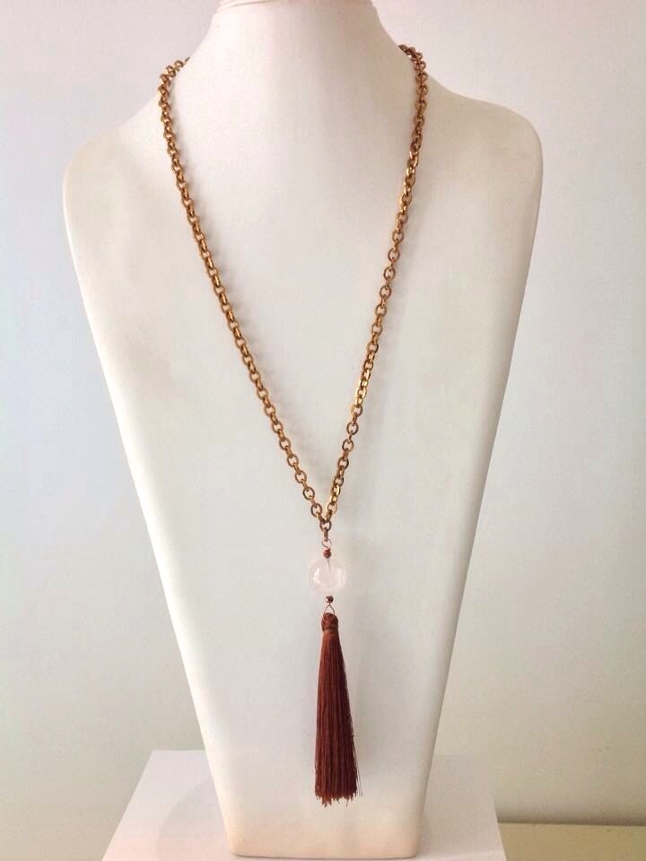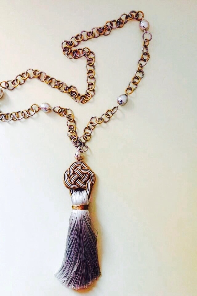 alcune varianti della collana con nappina in seta presente in questo store di Gaia Mercieca Bijoux