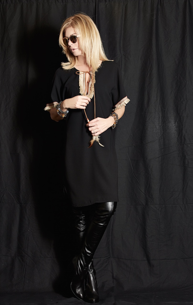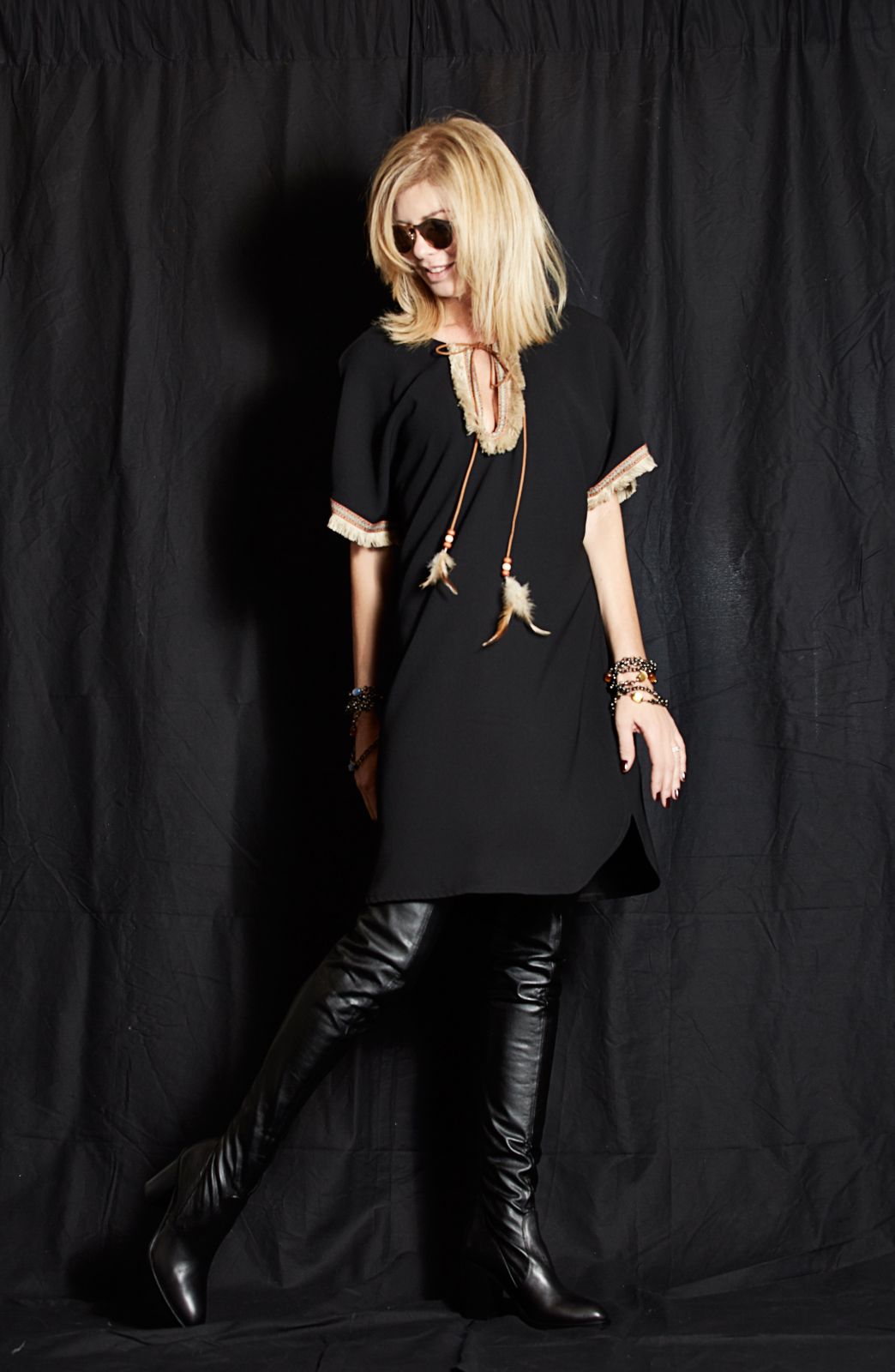 Un abito con richiami nomadi, l’incursione cool della pelliccia ecologica, le collane gioiello di Gaia Mercieca Bijoux, il tocco rock chic dei cuissard in pelle, e siamo pronte per qualsiasi impegno, anche il più banale, con un look very very fashion.