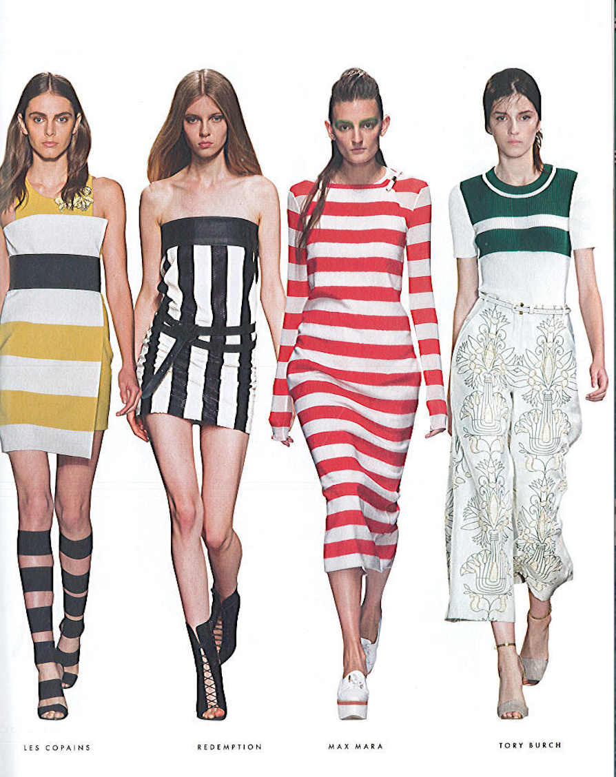 Una manciata di righe approda anche sulle pochette,  su scarpe, borse e cappelli, per non farci mancare proprio nulla! Questa tendenza moda la troviamo in tutta la sfilata di Tommy Hilfigher, un omaggio ai toni vivaci caraibici…che aspettate, scegliete i vostri pezzi preferiti, e cominciate il vostro shopping!
