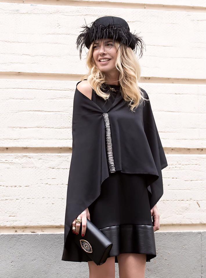 mantella_nera_nadia_la_bella mantella_corta_asmileplease cappello_piume_asmileplease accessori_inverno_2017_asmileplease borsa_nera_inverno_2017_asmileplease gioielli_scultura_asmileplease