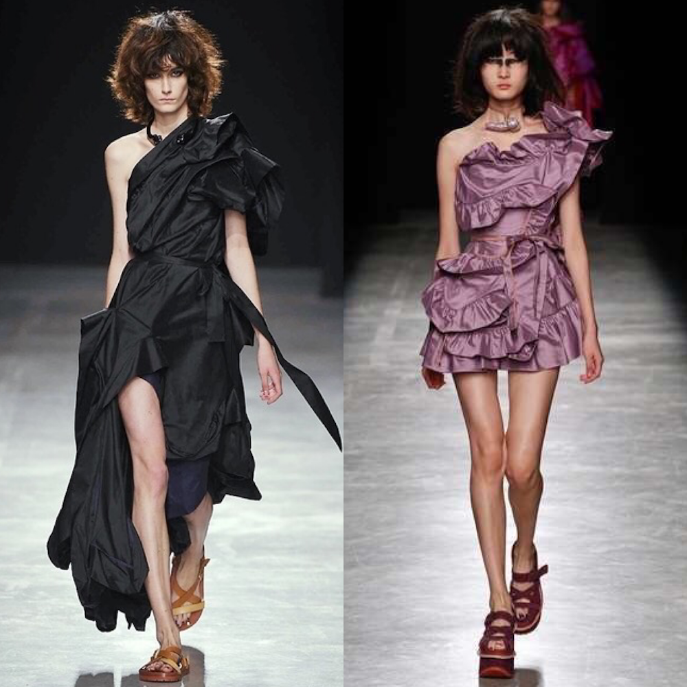 Il mio è un abito di qualche collezione fa di Lanvin (ma come ci siamo dette più volte, certi capi rimangono nell’armadio sempre) che ho modificato, facendolo diventare monospalla. Se avete qualcosa di simile riciclatelo e sarete assolutamente trendy!!!