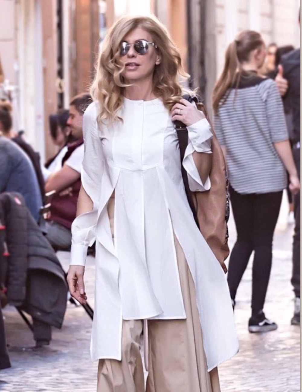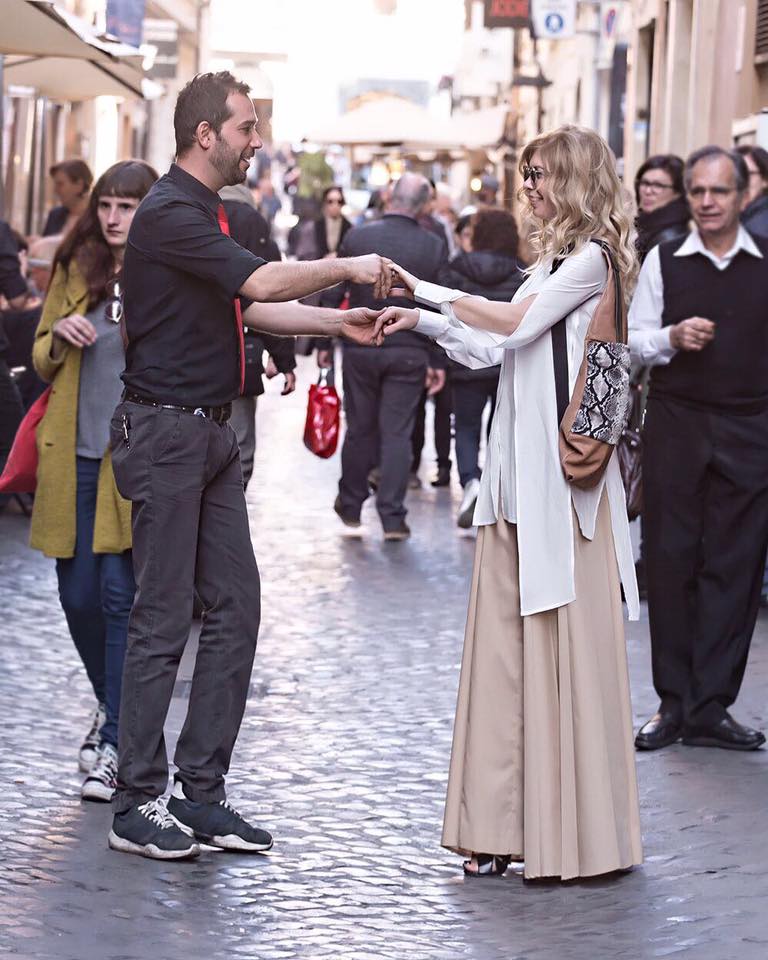 Bene, parcheggiamo e iniziamo a gironzolare per le vie del centro, improvvisamente Chiara si ferma e sorridendo, afferrata la sua macchina mi dice: “Nadia, ma non vedi quello che sta succedendo? Ti guardano tutti, questa scena la devo assolutamente riprendere”. In un attimo mi sono ritrovata nel bel mezzo di uno shooting improvvisato. Quel giorno erano tutti di buonumore e l’empatia che si è creata con i passanti è stata davvero unica.