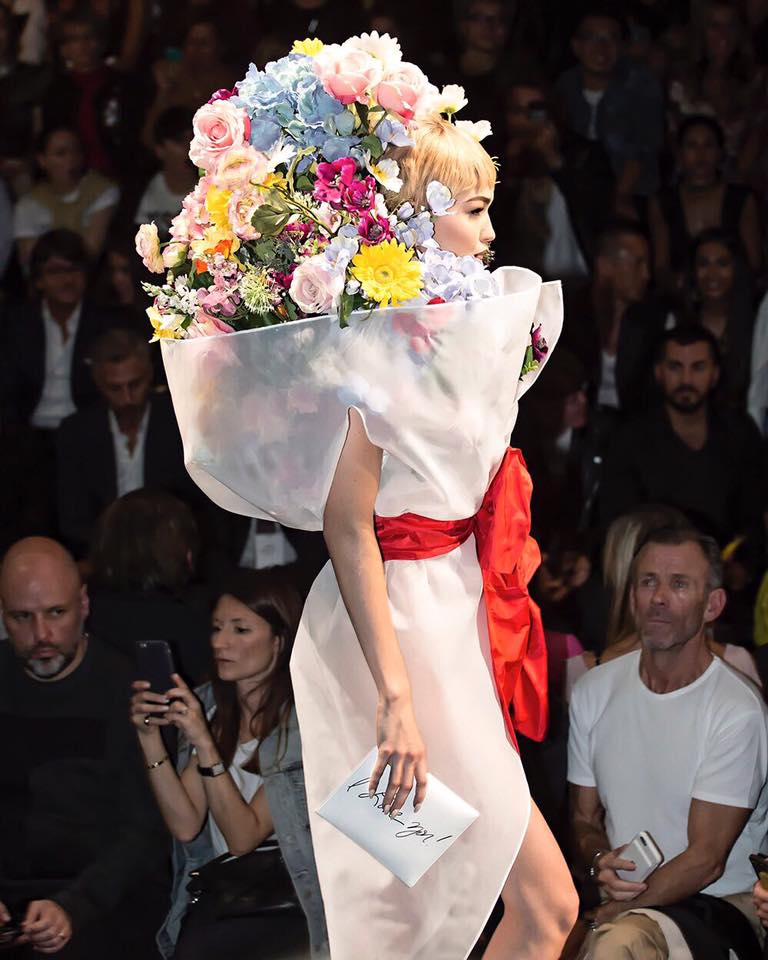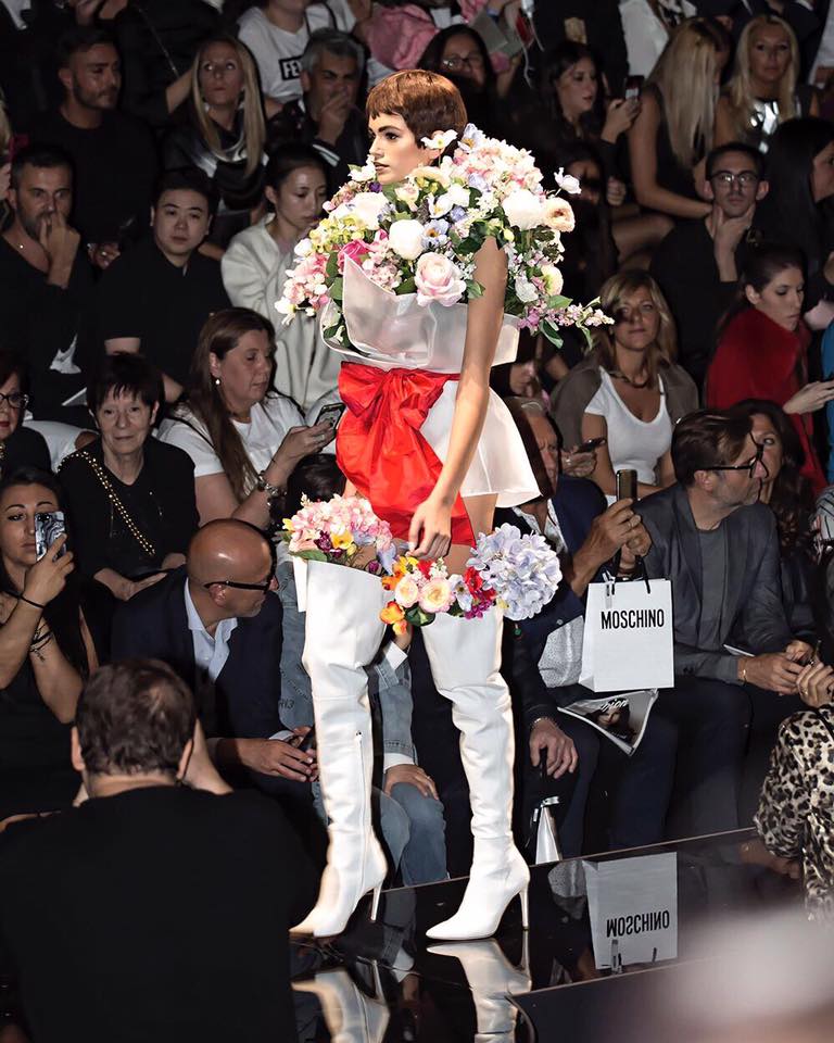 Moschino alla Milano Fashion Week e la presentazione della nuova collezione Primavera/Estate 2018. Durante lo show, le modelle hanno assunto le sembianze di rose e tulipani viventi…