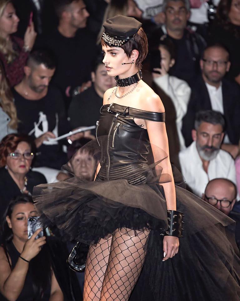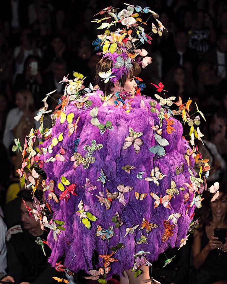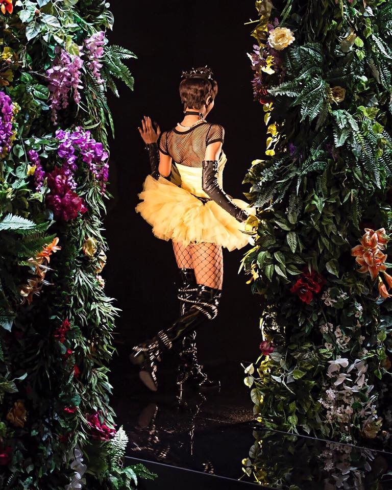 Gonne in tulle effetto tutù, hot-pants di pelle nera, mentre gli abiti finali hanno trasformato le modelle in bouquets multicolor dall’aspetto spettacolare. Inutile dirvi che assistere alle sue sfilate è decisamente “elettrizzante!”.