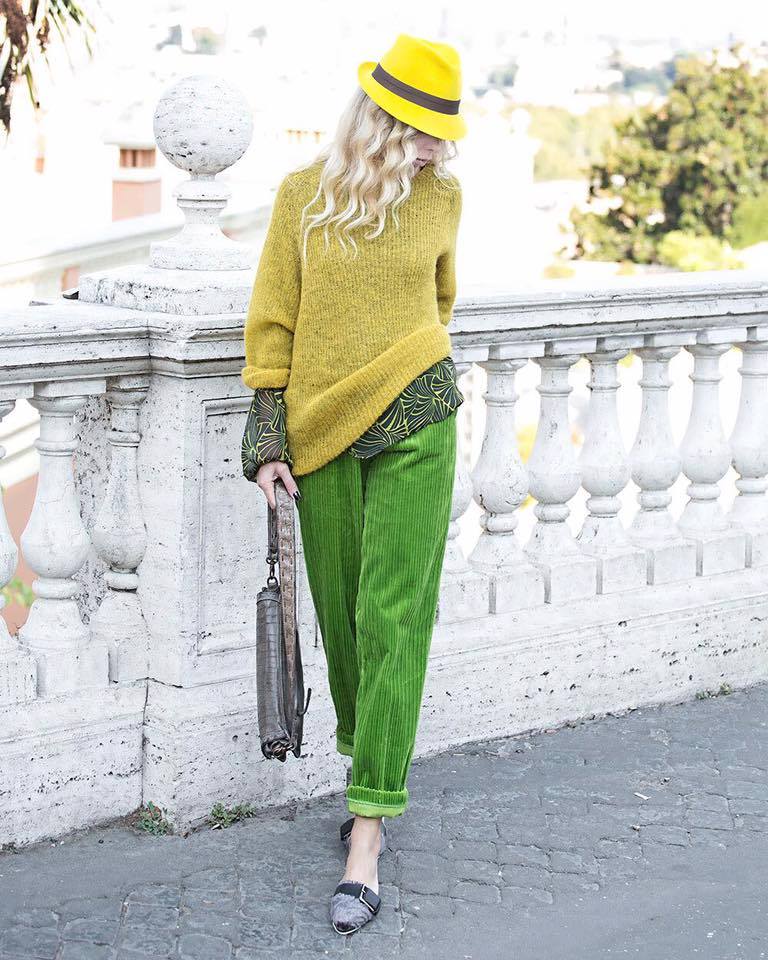 Come descrivervi questo outfit? Meravigliosamente colorato, per tutte le donne che preferiscono un look “fuori dal gregge” rimanendo comunque “très chic”