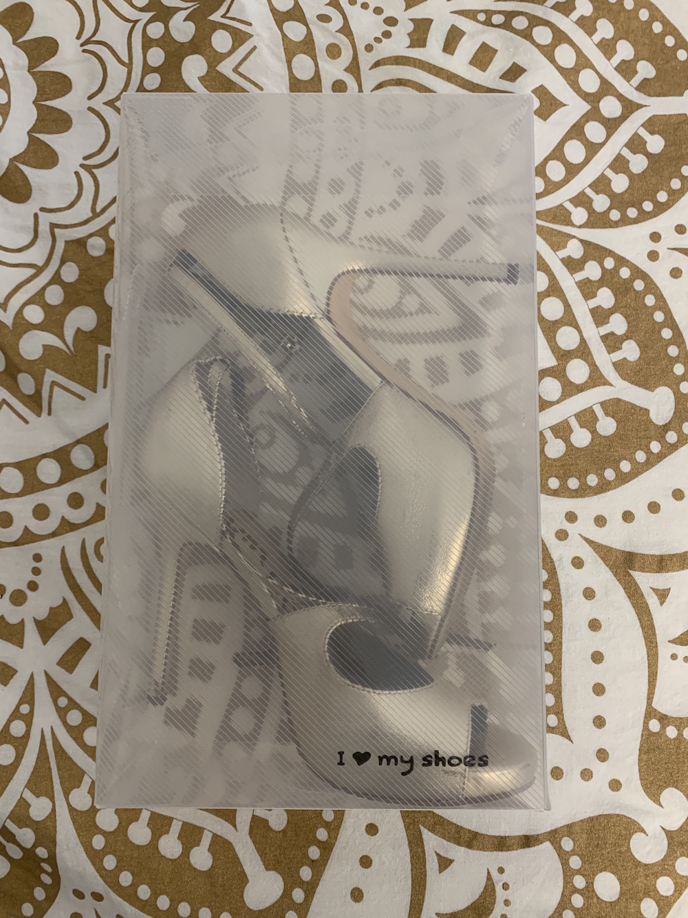 le altre ora sono sotto il letto, ordinate e facili da “consultare” per i miei look. Nella scatola trasparente ho messo le mie scarpe più delicate, color oro (quanto le amo)