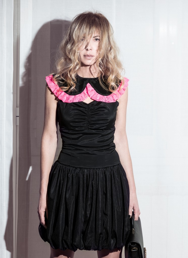 Questo brand, diventato famoso con il suo monoprodotto, IL KIMONO, ha deciso finalmente di produrre un’intera collezione. Il mood street style di questo marchio è assolutamente versatile. I capi disegnati coprono a 360 gradi le esigenze di qualsiasi donna. L’abito nero, movimentato dal colletto bordato di fucsia, che vi propongo in questi scatti l’ho interpretato in versione rock, abbinandolo a degli anfibi di Yves Saint Laurente alla borsa di Federica