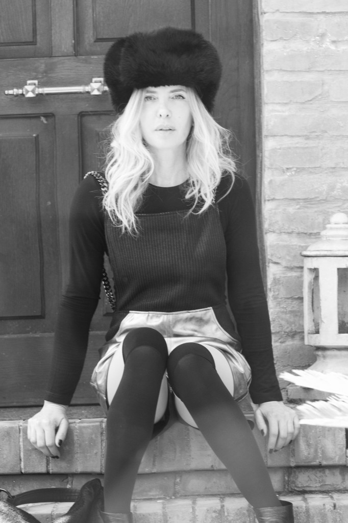 La salopette è corta e messa in risalto dalla complicità delle parigine, la bag, di pelliccia ecologica, è extra large, La ciliegia sulla torta? Il colbacco. Adoro questo outfit!!!   foto by Francesco Massella salopette  Luxury Fashion PretACouture bag  Luxury Fashion PretACouture colbacco  no brand orecchini stella  Luxury Fashion jewels parigine Pierre Mantoux boots  Jeffrey Campbell
